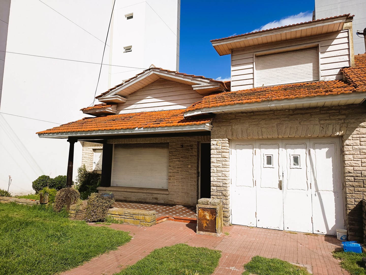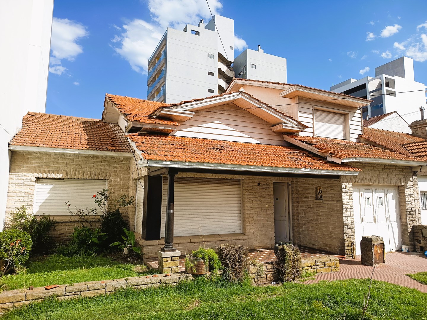 EN VENTA CHALET MARPLATENCE 4 AMB EN PTA MOGOTES, APTO PROPIEDAD HORIZONTAL, IDEAL INVERSION - En lo mejor de Pta Mogotes, excelente ubicacion a 100 metros de la costa, vendemos chalet tipico marplatence de 4 ambientes mas dependencia, con frente de piedra y techos de tejas, a reciclar, mejorar o para desarrollo de inversion. Sobre terreno de 12.25m de frente por 24,51m de fondo, 300,24 m2 totales, 4 ambientes mas dependencia y garage, 179 m2 cubiertos y semi, medidas aproximadas. Ideal Inversion, zonificacion COT C2, permite construir hasta 6/7 plantas en altura, ampliaciones para Hotel/Hostel, u otros usos comerciales. Muy buena calidad constructiva, en estado original, buen estado gral estructural de muros, columnas, techos y pisos, necesita reciclado de baños, cocina, todas las cañerias, desagues y cableado electrico. Todos los servicios instalados, luz electrica, agua corriente, gas natural, cloacas, calle asfaltada. En planta baja: Amplio living comedor de 5x6 m aprox, con amplios ventanales y chimenea. Cocina comedor separada. 2 habitaciones amplias con placard, piso parquet buen estado, una al frente, la otra al patio. 2 baños, uno grande completo y otro de servicio. Jardin al frente y amplio patio trasero, con parrilla y lavadero. Garage para un auto. Habitacion de servicio. En planta alta: Habitacion al frente con placard, piso parquet buen estado. Baño completo. Balcon terraza al jardin trasero. En pleno barrio de Pta Mogotes, frente al Complejo de Balnearios, sobre calle Perez Bulnes a una cuadra de la costa, zona recidencial y de veraneo, estando cerca de playas de Mogotes, playas del sur, Bosque Peralta Ramos, puerto, a 20 min del centro de la ciudad en auto, líneas de omnibus y comercios en la zona. VALOR: USD 296.000 (DOSCIENTOS NOVENTA Y SEIS mil dolares estadounidenses) Se escuchan ofertas, OPORTUNIDAD DE INVERSION.